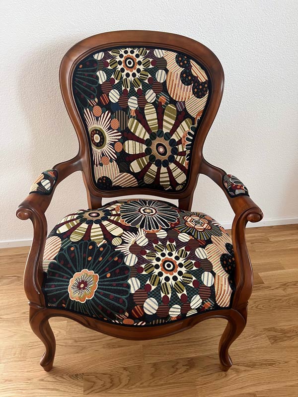 Am schönsten sind die Polsteraufträge für uns dann, wenn man die Bilder der Resultate ohne "Vorher / Nachher" Beschriftung ins Web stellen kann, so wie bei diesem herrlichen alten Pfeifenfauteuil!
