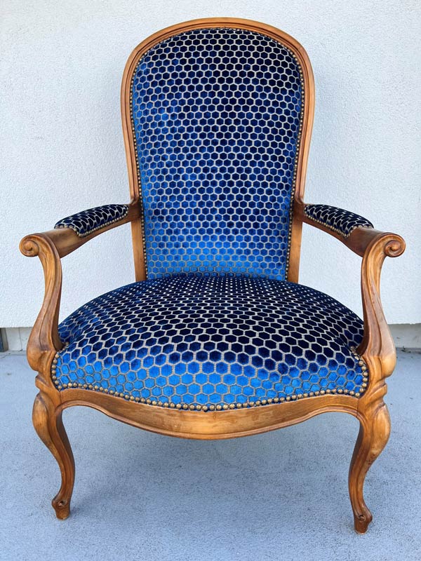 .... sondern auch wundervolle Möbelstücke, die allerdings heute etwas in die Jahre gekommen sind. So wie dieser schöne Sessel, den wir nach konventioneller Art neu gepolstert und mit hochwertigem Möbelstoff von Andrew Martin neu bezogen haben, damit er seinem Besitzer noch viele weitere Jahre ein treuer Begleiter sein kann.