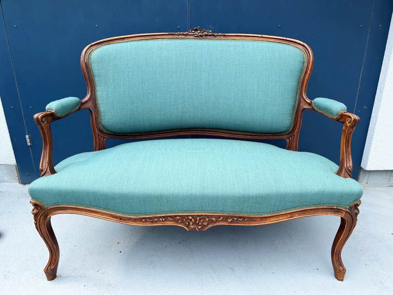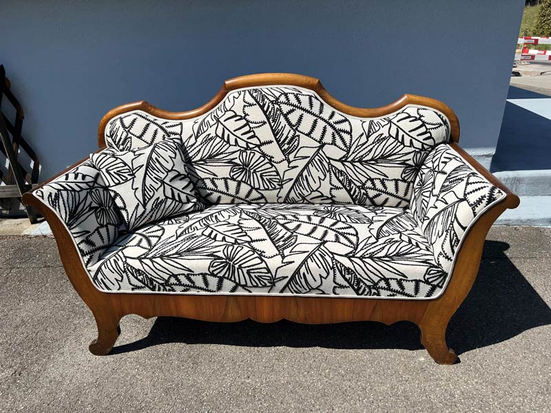 Zugegeben, manchmal schweifen unsere Gedanken beim Polstern schon ein wenig ab in die Vergangenheit. Was mag dieses prachtvolle Sofa schon alles erlebt haben? Gaben sich zwei Liebende darauf den ersten Kuss? Sah sich jemand darauf gebannt die Bilder der ersten Mondlandung an? Oder war es der Lieblingsort in rauschenden Ballnächten, um sich kurz auszuruhen? Auf jeden Fall braucht so viel Geschichte immer einen passenden Rahmen - und diesen wählen wir gerne mit Ihnen zusammen aus. In diesem Fall eine Neupolsterung und